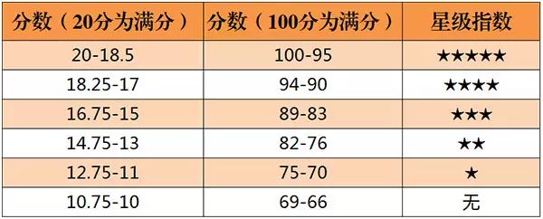 英國(guó)的《醇鑒》(Decanter,簡(jiǎn)稱 DE)雜志始創(chuàng)于 1975 年,是一本專門介紹世界葡萄酒及烈酒的專業(yè)雜志。由于英國(guó)幾乎不生產(chǎn)葡萄酒,加上其王室在歐洲的崇高地位,大眾普遍認(rèn)為英國(guó)對(duì)葡萄酒的評(píng)分會(huì)更客觀公正,因此《醇鑒》雜志在英語(yǔ)國(guó)家有著很大的影響力。該雜志評(píng)分采用 20 分制,0.25 分為最小單位,提供百分制換算,同時(shí)有從 0 星級(jí)到 5 星級(jí)的推薦規(guī)范: