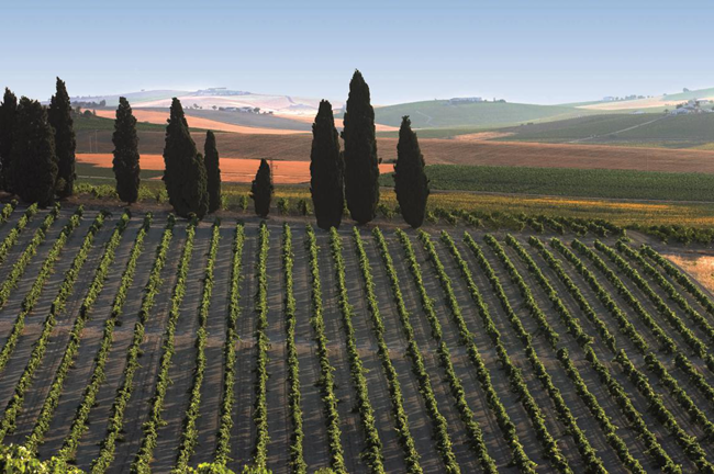 雪莉酒可以使用三個(gè)葡萄品種來進(jìn)行釀造,分別是帕洛米諾(Palomino)、佩德羅-希梅內(nèi)斯(Pedro Ximenez,簡稱PX)和亞歷山大麝香(Muscat of Alexandria)。帕洛米諾在赫雷斯廣泛種植,釀出的葡萄酒天然低酸并缺乏明顯的品種芳香,是雪莉酒的理想基酒;佩德羅-希梅內(nèi)斯和亞歷山大麝香種植量相對較少,二者皆用于釀造甜型雪莉酒。
