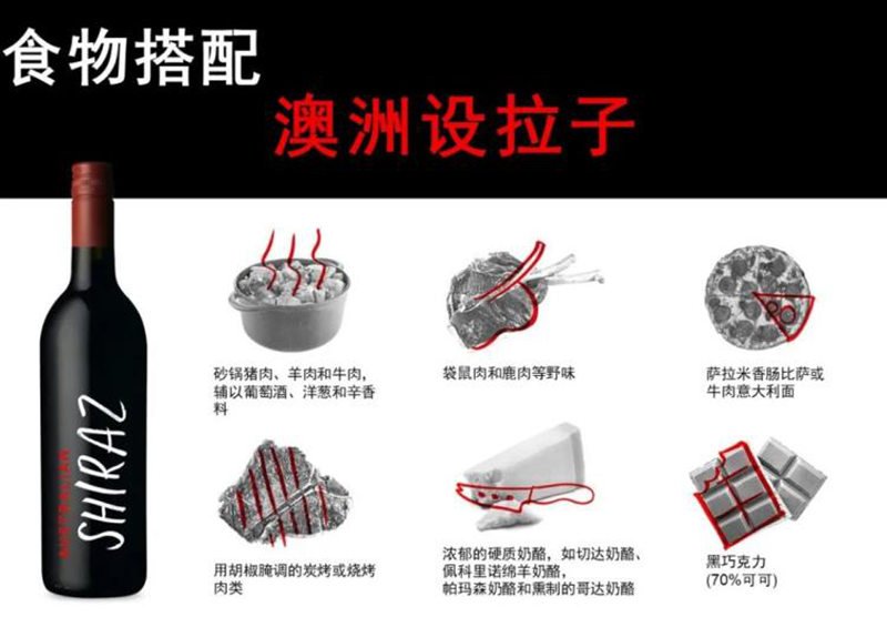 將澳大利亞設(shè)拉子與美食搭配的訣竅是選擇與葡萄酒的力量感和強壯程度相匹配的原料或菜肴。值得注意的是,澳大利亞設(shè)拉子胡椒般的辛香料味道與烤肉是奇跡般的絕佳搭配。