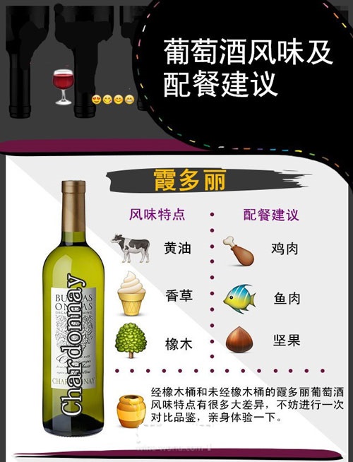 東莞藍菲城堡葡萄酒代理商用6張圖片列出最主要的6種葡萄酒,并簡要說明相應的風格特點和配餐建議。比如稱得上“千面女郎”的霞多麗葡萄酒,即可以清新脆爽,也可以豐滿順滑,而決定其風格的,除品種本身外,還有釀酒工藝,尤其是橡木桶的使用。【盤點9種糕點與葡萄酒的完美搭配