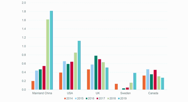 從對全球的出口價格來看,價格高于10澳元每升的歌海娜表現(xiàn)尤為突出,出口額從2014年的120萬澳元增長至2019年的400萬澳元,這一價格區(qū)間的歌海娜出口額占據(jù)了所有價格區(qū)間的歌海娜總出口額的72%。