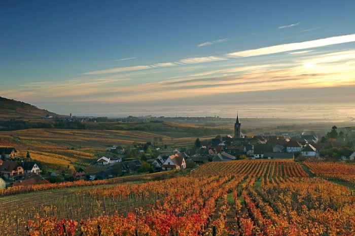 阿爾薩斯地區的葡萄種植區靜靜地散布在阿爾薩斯平原的高處,遠離毗鄰三國的經濟大區的喧囂,時間仿佛都在這里停下了腳步。大大小小的葡萄田環繞著大片簇擁著尖頂的教堂而建、有著紅色屋頂的小村莊。木頭房子和在每一家窗口上盛開的紅色天竺葵和玫瑰將這般平靜的田園景色裝點得好像明信片一樣。紅酒加盟人士認為,整齊有序的葡萄園折射出阿爾薩斯人的嚴謹,而隨處可見的美食餐廳和典型的當地小酒館"winstubs"則是不折不扣的法國風情。歷史沉淀而成的這種雙重性正是阿爾薩斯地區引人入勝之處。享受生活、熱情好客和釀出最好的美酒就是他們的處世哲學。著名的"紅酒之路"從北到南貫穿著整片葡萄種植區,成為當地旅游業的熱點。