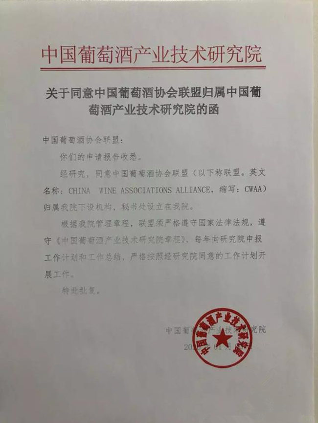 為了進(jìn)一步推動(dòng)聯(lián)盟工作,營(yíng)造更加良好的工作環(huán)境和合理合法的開展工作,近日,中國(guó)葡萄酒產(chǎn)業(yè)技術(shù)研究院審批通過(guò)中國(guó)葡萄酒協(xié)會(huì)聯(lián)盟歸屬中國(guó)葡萄酒產(chǎn)業(yè)技術(shù)研究院領(lǐng)導(dǎo),秘書處設(shè)立在中國(guó)葡萄酒產(chǎn)業(yè)技術(shù)研究院。今后聯(lián)盟工作將在中國(guó)葡萄酒產(chǎn)業(yè)技術(shù)研究院的直接領(lǐng)導(dǎo)下開展工作,報(bào)備工作計(jì)劃和工作總結(jié)。