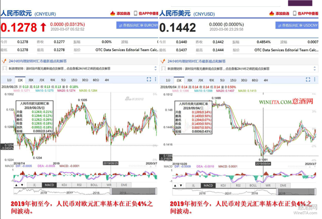 意酒網搜索了人民幣對主要葡萄酒生產國的匯率。發現2019年以來,人民幣對美元和歐元匯率一直在正負4%的幅度內波動。但是從2017年初至今,人民幣對阿根廷比索的匯率升值達到300%,從2019年初至今,人民幣對阿根廷比索的匯率升值達到200%。原來時因為匯率的大幅度波動,導致阿根廷葡萄酒的進口價格大幅度下跌。這種匯率變動,短期看對阿根廷葡萄酒價格有利,但是從長期看,阿根廷葡萄酒蘊含較大風險。