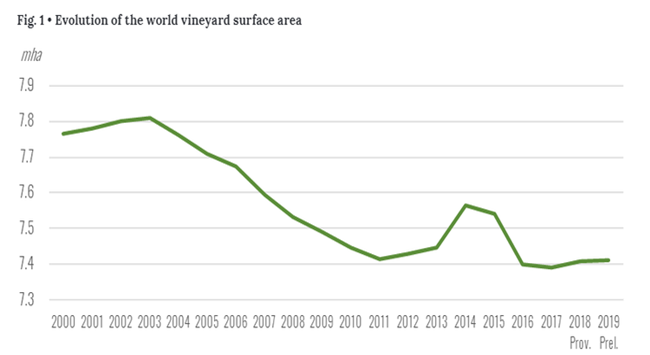 (2000—2019世界葡萄園面積的演變)