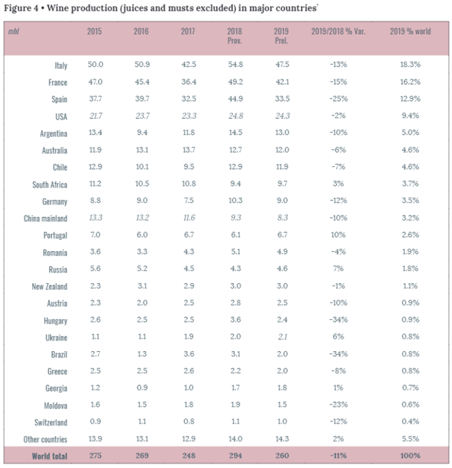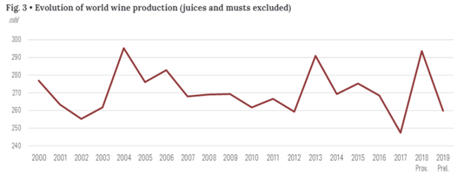 總體而言,在連續(xù)兩年被定義為極度動蕩之后,2019年使全球葡萄酒產(chǎn)量回到平均水平。