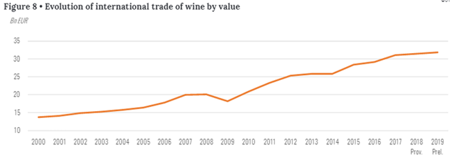 (2000—2019葡萄酒國際貿(mào)易價值的演變)