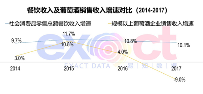 受供給側結構改革等因素影響,國內經濟增速放緩,2017年葡萄酒銷售收入增速也出現下降,規模以上葡萄酒企業甚至出現負增長。預計未來仍有下降趨勢。