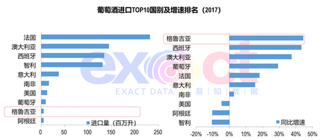 沿海葡萄酒小產國格魯吉亞增長快速,增速超過40%,躋身十強;