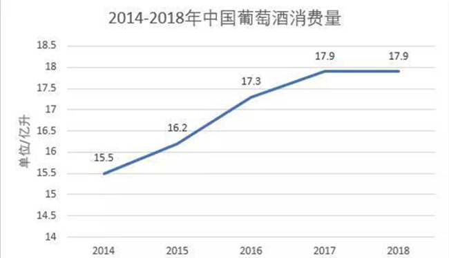 如上圖數據顯示,從2014-2018年,中國的葡萄酒人均消費量從1.17升上漲至1.5升,增長了28.2%,顯示出中國市場葡萄酒消費的強勁增長態勢。