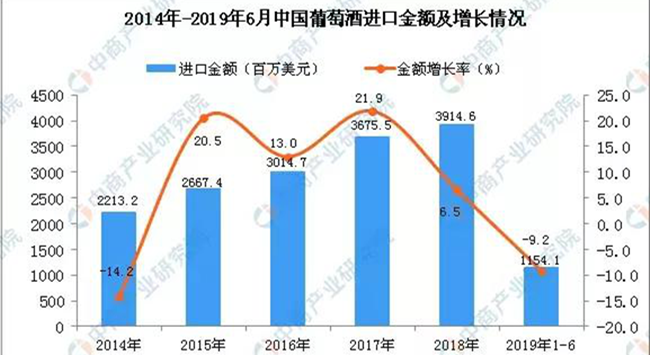 近日,中商產(chǎn)業(yè)研究院發(fā)布了一份2019年1-6月中國葡萄酒進(jìn)口數(shù)據(jù)。以下是今年上半年中國葡萄酒進(jìn)口數(shù)量及金額增長率情況。