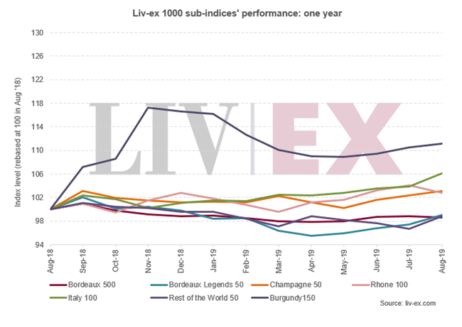 Liv-ex 1000指數(shù)是使用Liv-ex 中間價格Mid Price來跟蹤世界不同酒區(qū)1,000款葡萄酒的價格表現(xiàn)。該指數(shù)是市場最廣泛的衡量標(biāo)準(zhǔn),由7個分項指數(shù)組成:波爾多500、波爾多傳奇50、勃艮第150、香檳50、羅納100、意大利100和世界其它酒區(qū)50。