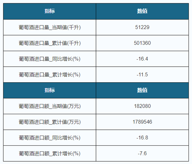2019年9月我國(guó)葡萄酒進(jìn)口量為51229千升,同比下降16.4%,進(jìn)口金額為182080萬(wàn)元,同比下降16.8%;1-9月進(jìn)口量為501360千升,累計(jì)下降11.5%,進(jìn)口金額為1789546萬(wàn)元,累計(jì)下降7.6%。