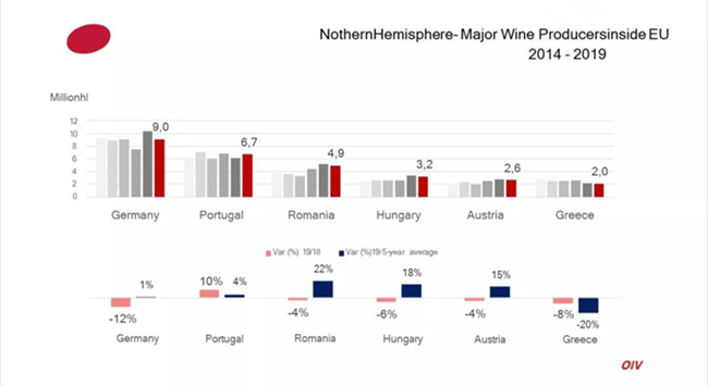 OIV的數(shù)據(jù)來自28個(gè)國家,占全球葡萄酒產(chǎn)量的85%。