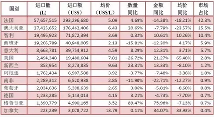• 2017年1-4月進口酒中,總體呈下跌趨勢,其中葡萄酒微跌,英進口啤酒猛增超5倍,白蘭地領漲烈性酒。 6月5日,中國食品土畜進出口商會酒類進出口商分會發布了2017年1-4月酒類商品進口統計情況的數據報告,對包括葡萄酒、烈酒、啤酒在內的酒類商品進口數量及進...