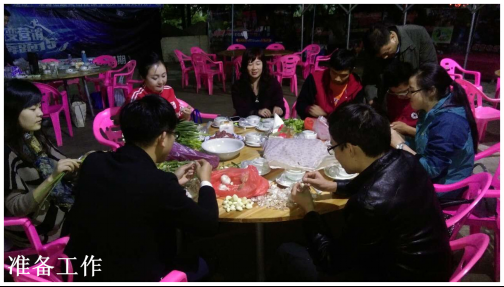 25號當(dāng)天,負(fù)責(zé)采購的同事根據(jù)大家寫好的菜單,提前采購好所需要的雞、鴨、魚、肉、蔬菜等各色原料,以及油鹽醬醋等各種調(diào)味品,開始做好活動(dòng)前的各項(xiàng)準(zhǔn)備工作。當(dāng)天下午5點(diǎn),大家在公司領(lǐng)導(dǎo)莊總、劉總、曾總的帶領(lǐng)下,陸續(xù)到達(dá)活動(dòng)現(xiàn)場——位于南城水濂山腳下順風(fēng)山莊內(nèi)的蒙之味烤全羊原生態(tài)KTV燒烤廣場。