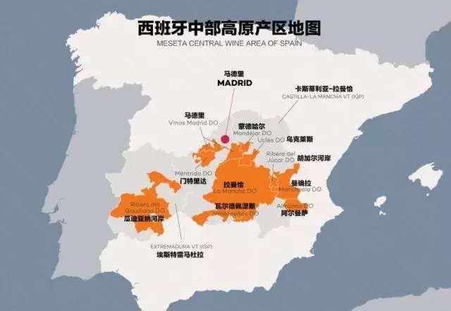 Castilla–La Mancha位于整個伊比利半島的正中心,這里有著非常典型的高原地型與大陸型氣候,日夜溫差極為劇烈,許多經濟農作都難以在這個區域發展。但這樣嚴峻的氣候環境,恰巧也提供了葡萄非常良好的成長空間,Castilla–La Mancha的葡萄園面積與葡萄酒產出量都占整個西班牙三分之二左右,廣達四十余萬公頃的葡萄園面積是世界之最。